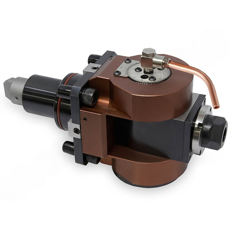 Универсальный фрезерный блок с возможностью изменения угла шпинделя. Предназначен для цанг ER20 по стандарту DIN 6499, с диапазоном зажима от 1 до 13 мм. Система внешнего охлаждения.